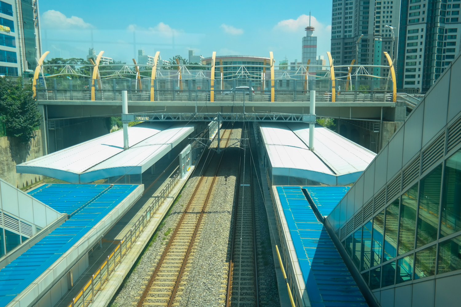 먼저 연수역 북쪽으로 나왔습니다. 지대보다 밑에 위치한 수인선 선로를 볼 수 있습니다.