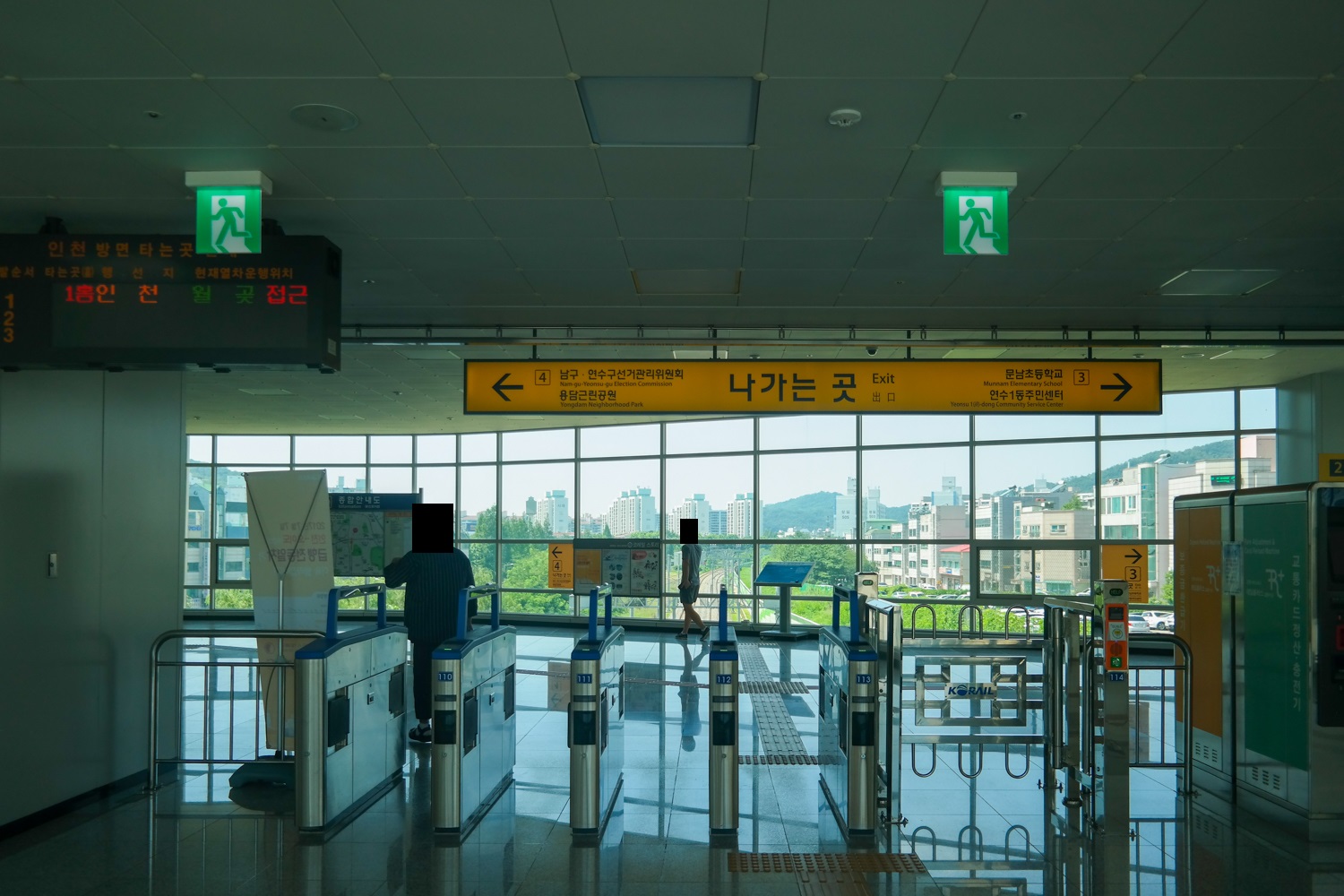 원인재역에서 한참을 기다려 열차를 탄 저는 다음 역인 연수역에 내렸습니다. 스크린도어가 막 공사가 끝났는지 스크린도어 끝에 “스크린도어 정상 작동 중”이라는 문구가 붙어 있었습니다.